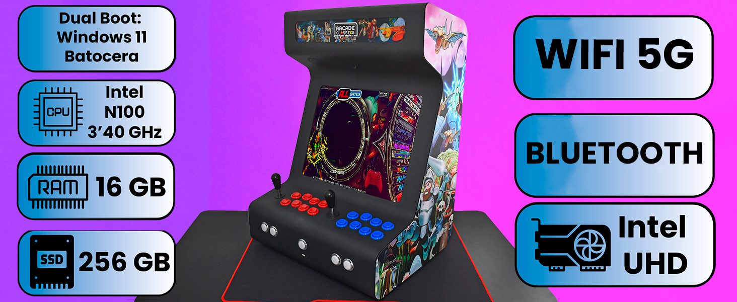 Incluye potente interfaz Batocera Linux corriendo bajo Intel N100 con 16GB de RAM, incluye una gran selección de juegos y sistemas que incluyen PS2, W ii, Naomi, Dreamcast, PSP, N 64, además de arcade recreativas , consolas de 16bits, 32bits y 64bits, Micro ordenadores: Amiga 500, Atari ST, Spectrum, Amstrad, MSX, Commodore 64 y mucho más...