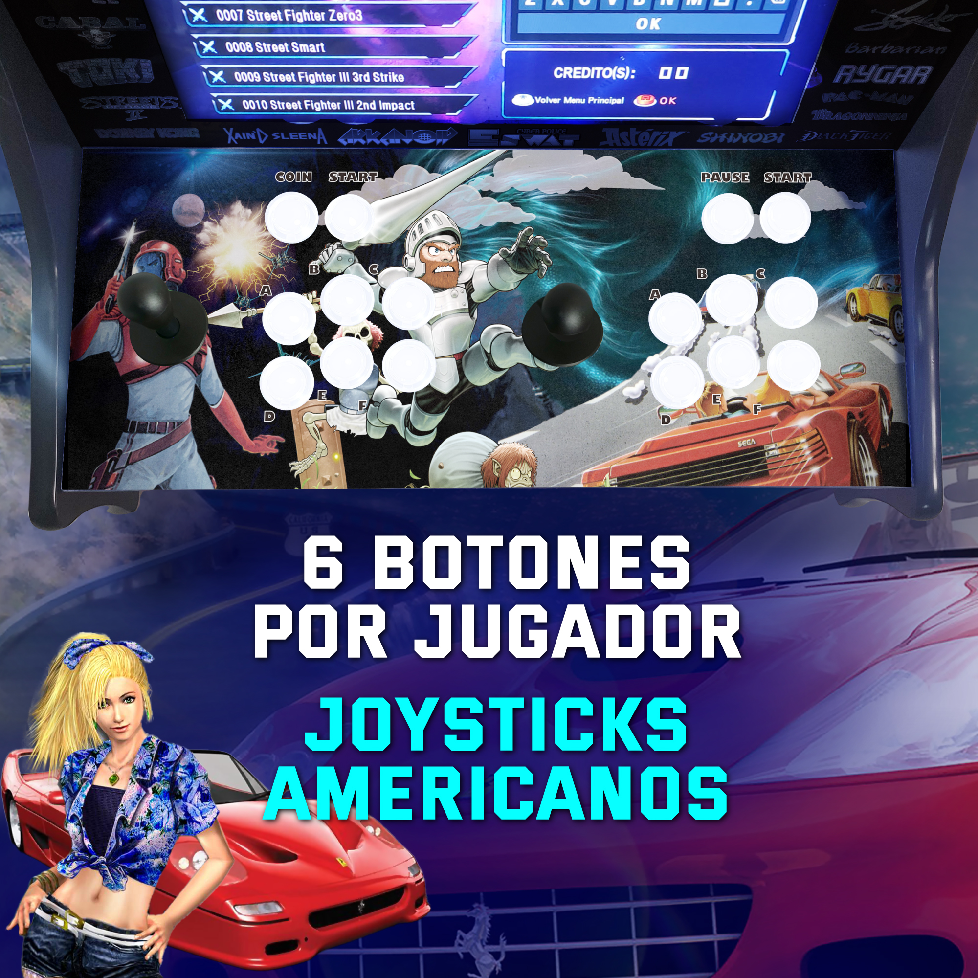 - Joysticks de tipo americano: para facilitar los combos y un manejo libre de input lag se ha optado por los joysticks de tipo americano.