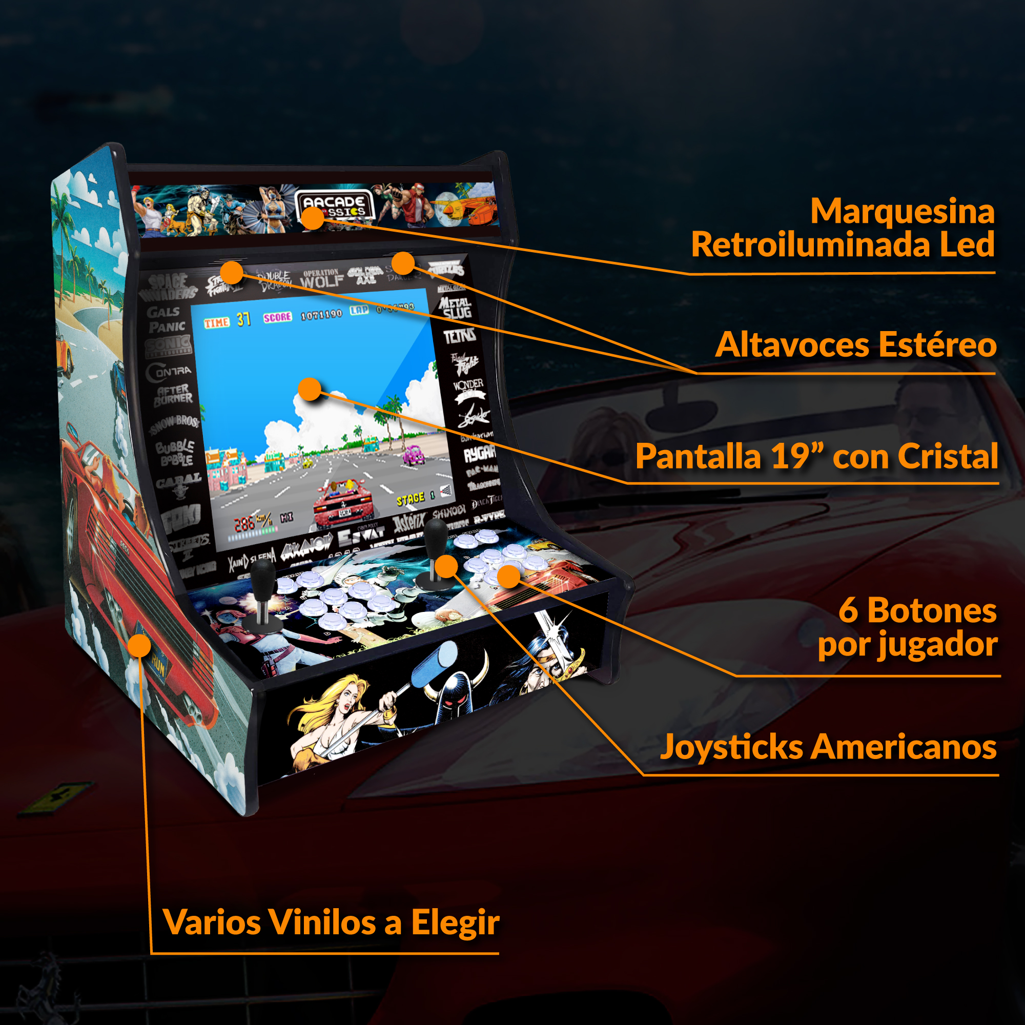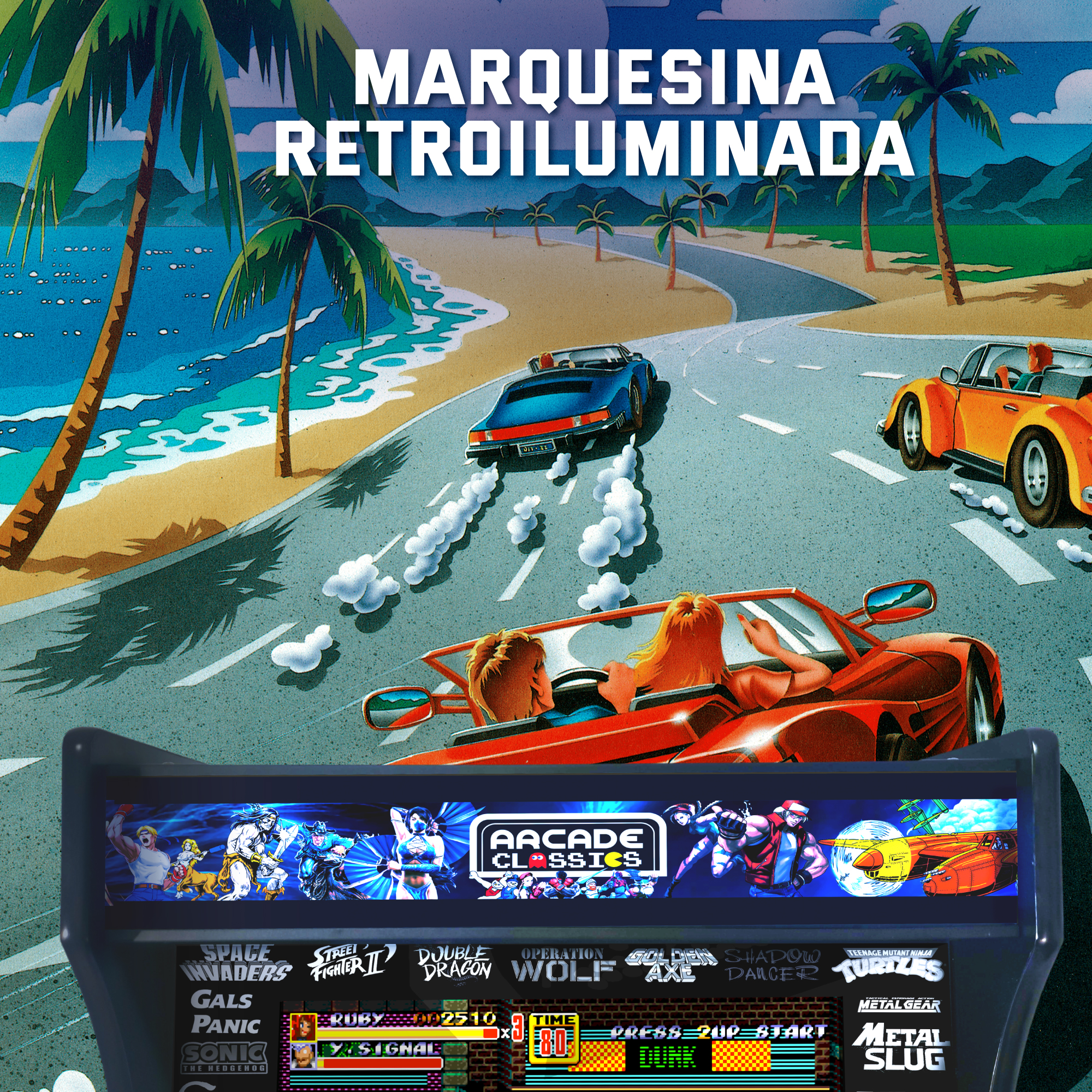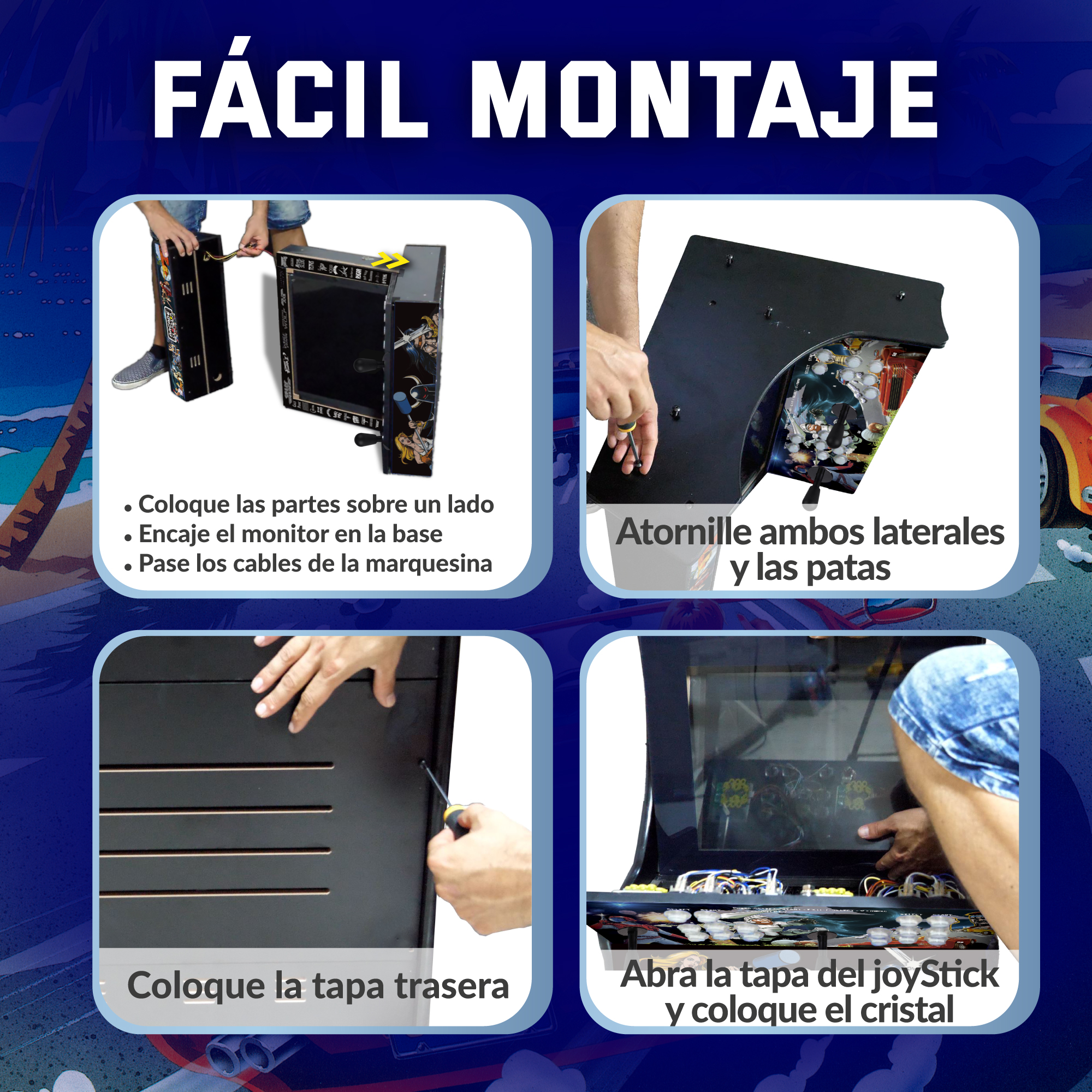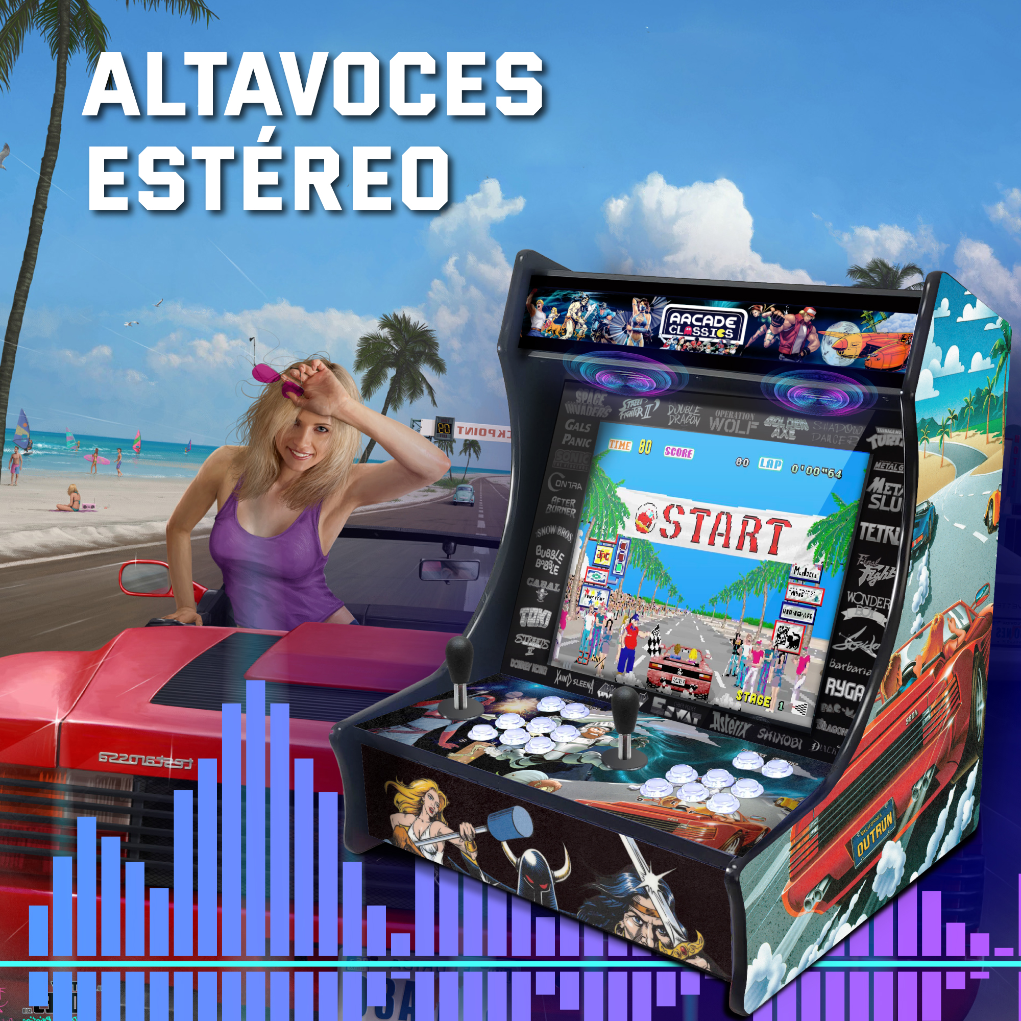 - Altavoces estéreo: disfrutará de una auténtica experiencia arcade genuina, incluye 2 altavoces estéreo en la marquesina como los recreativos de antaño.
