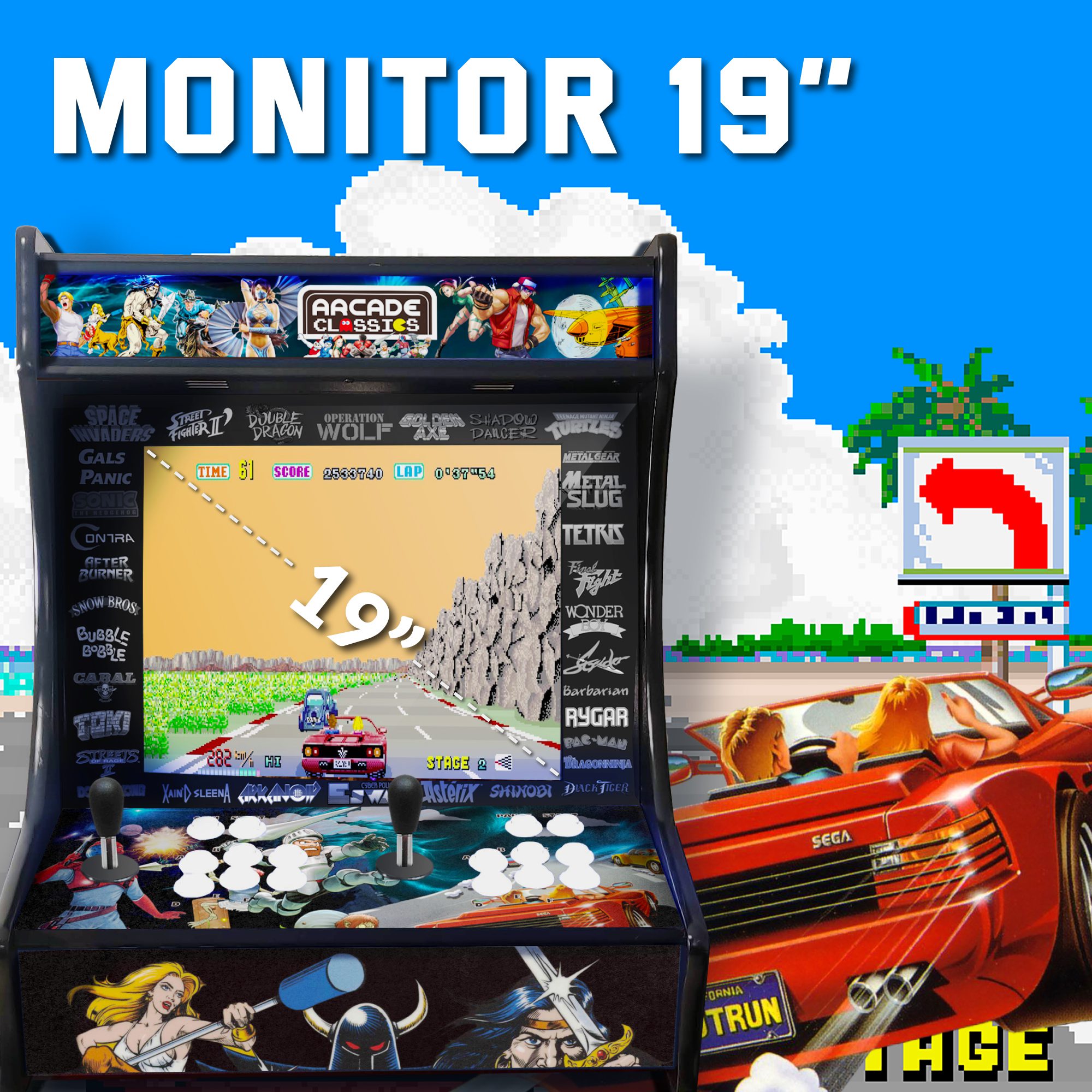 La bartop de 19″ ha sido desarrollada a mano tal como se realizaban las originales máquinas recreativas, un auténtico mueble arcade jamas soñado por los entusiastas de los juegos retro ya está aquí configurable en múltiples idiomas, sus características técnicas más destacables son: